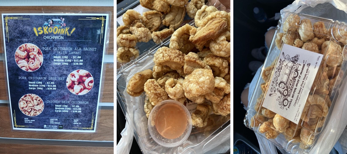 Iskooink Chicharon specializes in fresh chicharon, including options like pork, chicken, and a half-and-half combination. Their menu caters perfectly to those on a low-carb diet.